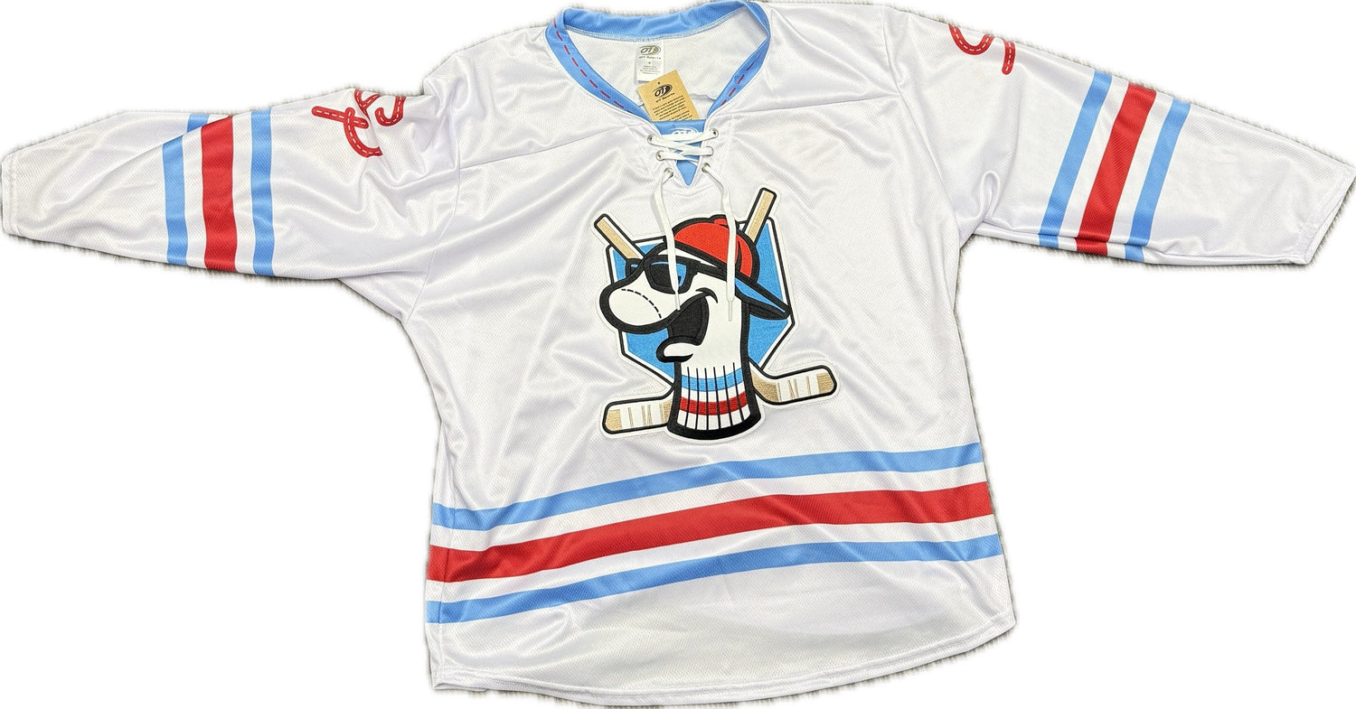 North Carolina is a baseball state, but with our state's team in the playoffs, why can't we mesh the best of both worlds? Introducing the "White Hot" Burlington Hockey jersey. It comes in adult sizes only from S-3XL.
