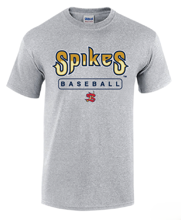 Show your team spirit with the State College Spikes ND2545 T-Shirt! This comfy grey tee features a fun "Spikes" text logo right above the word "Baseball," making it perfect for game days or casual wear. Soft and stylish, it’s a playful way to cheer on your favorite team wherever you go.