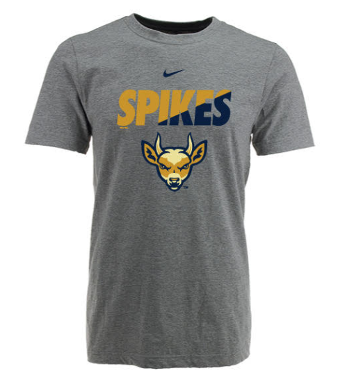 Get game-day ready with this heather grey cotton tee, featuring "Spikes" text right above the fierce deer head logo on the chest. Lightweight and comfy, it’s your perfect companion for cheering loud and proud!