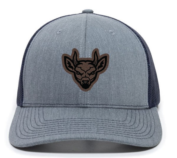 This heather grey cap with a navy mesh back keeps you cool and stylish all day long. Featuring a playful deer head logo crafted in leather on the front, it adds a touch of rugged charm to your look. The adjustable strap ensures a perfect fit for every adventure. Perfect for fans who want to show off their State College Spikes pride with a fun twist!