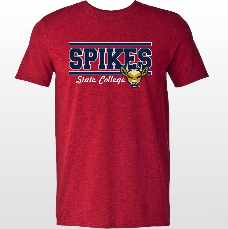 Get ready to stand out with the State College Spikes T-Shirt! This bright red short sleeve tee features bold "Spikes" text across the chest, "State College" right below, and the fierce deer head logo to top it off. Perfect for showing off your team pride with a playful twist, it’s comfy and stylish for any casual outing or game day fun.