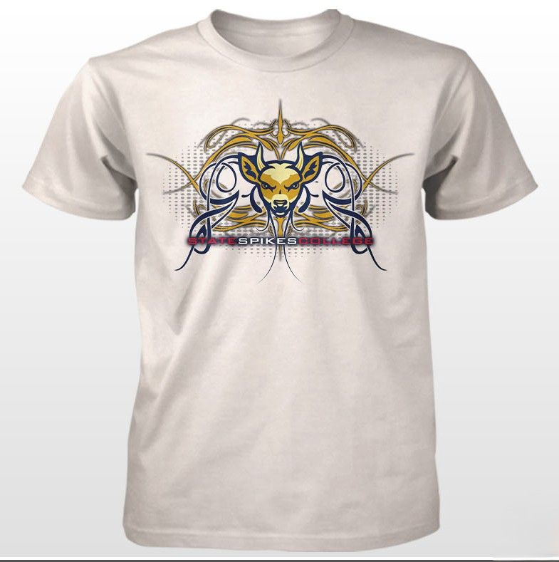 Show your team spirit with this playful natural short sleeve t-shirt featuring a bold deer head logo above the text "State College Spikes." Comfortable and casual, it’s perfect for game days or everyday wear.
