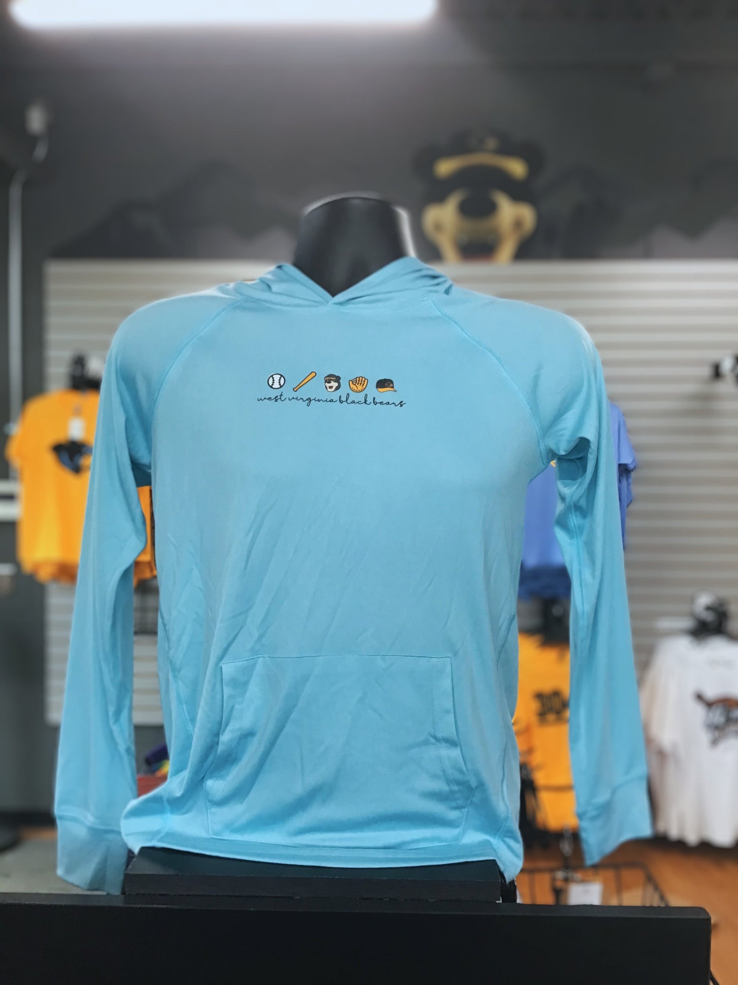 Youth Cali Blue Sunproof Hoodie – Keep young fans cool and protected in this 100% polyester interlock jersey hoodie. With UPF 50 sun protection and a front pouch pocket, it’s perfect for showing West Virginia Black Bears pride all season long.