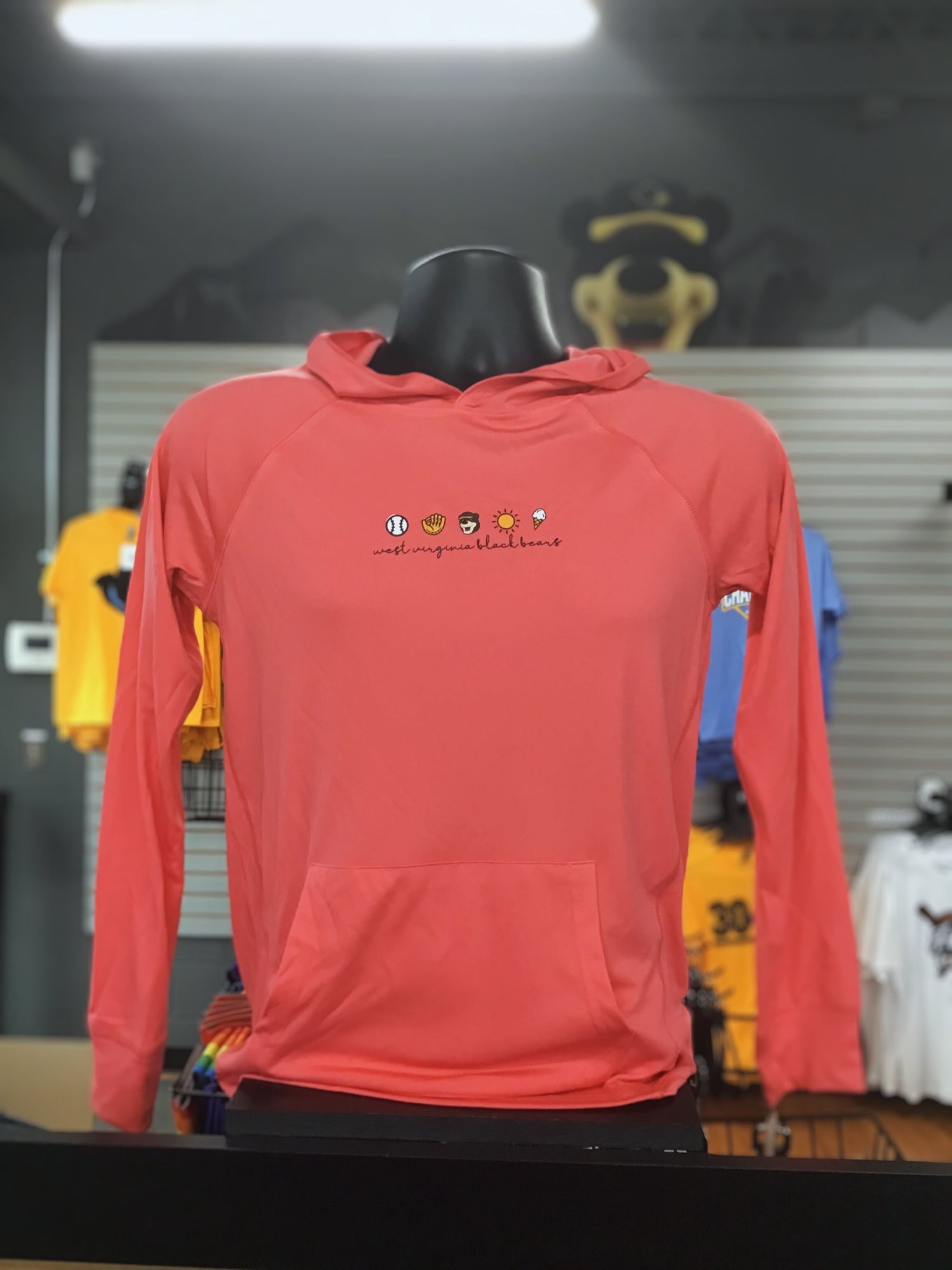 Youth Watermelon Sunproof Hoodie – Keep young fans cool and protected in this 100% polyester interlock jersey hoodie. With UPF 50 sun protection and a front pouch pocket, it’s perfect for showing West Virginia Black Bears pride all season long.
